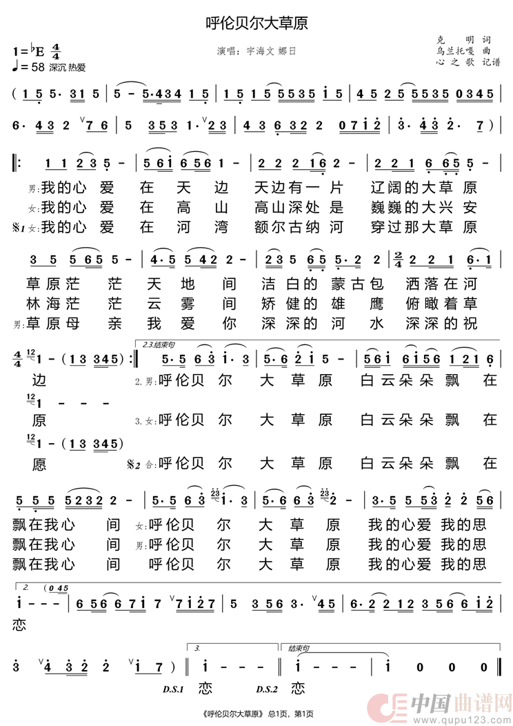 作词:克明   作曲:乌兰托嘎   演唱(奏):宇海文 娜日   来源:谱友心之歌上传   上传:心之歌   日期:2026-04-23   浏览次数: