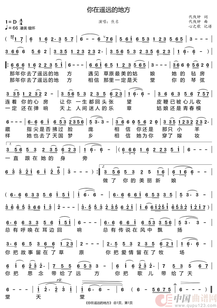 关于《你在遥远的地方》曲谱的评论