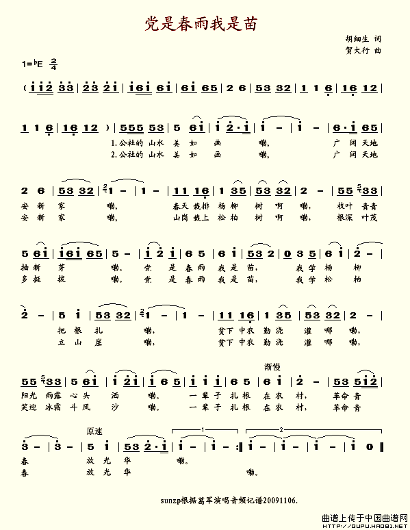 作词:胡细生   作曲:贺大行   格式:简谱   来源:乐友sunzp 记谱上传|   上传:sunzp   日期:2010-03-24   浏览次数: