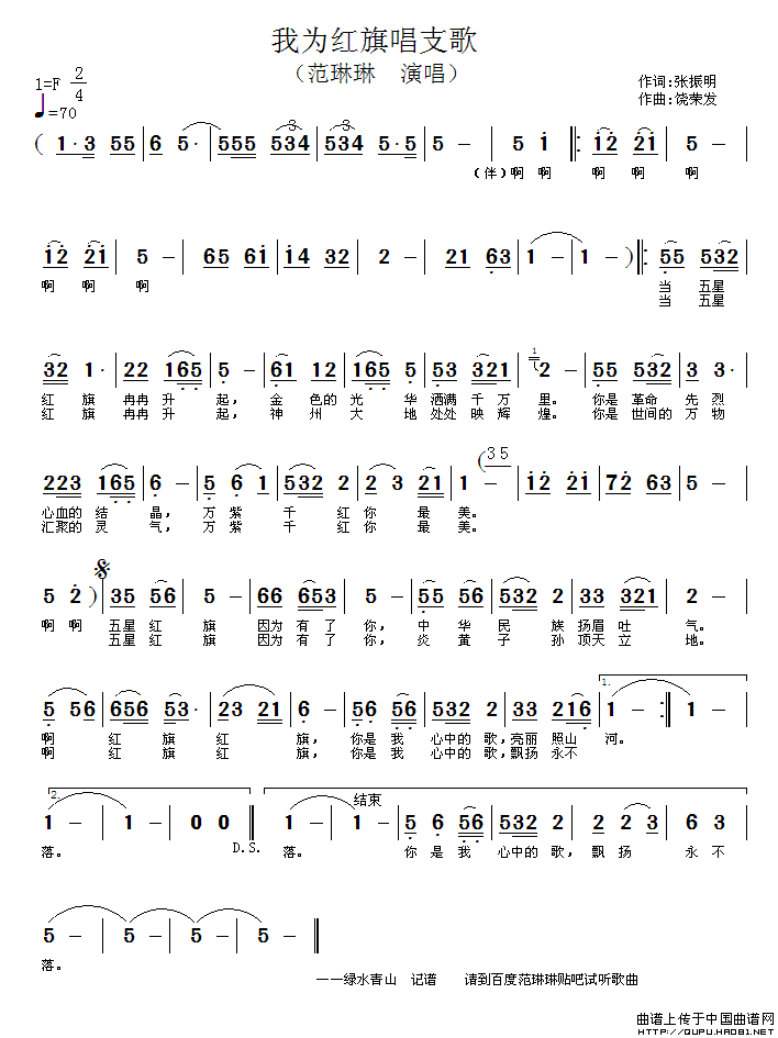 作词:张振明   作曲:饶荣发   格式:简谱   来源:绿水青山 记谱上传   上传:绿水青山   日期:2011-12-15   浏览次数: