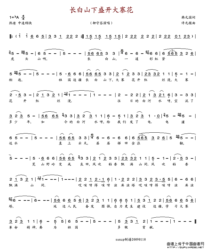 关于《长白山下盛开大寨花》曲谱的评论