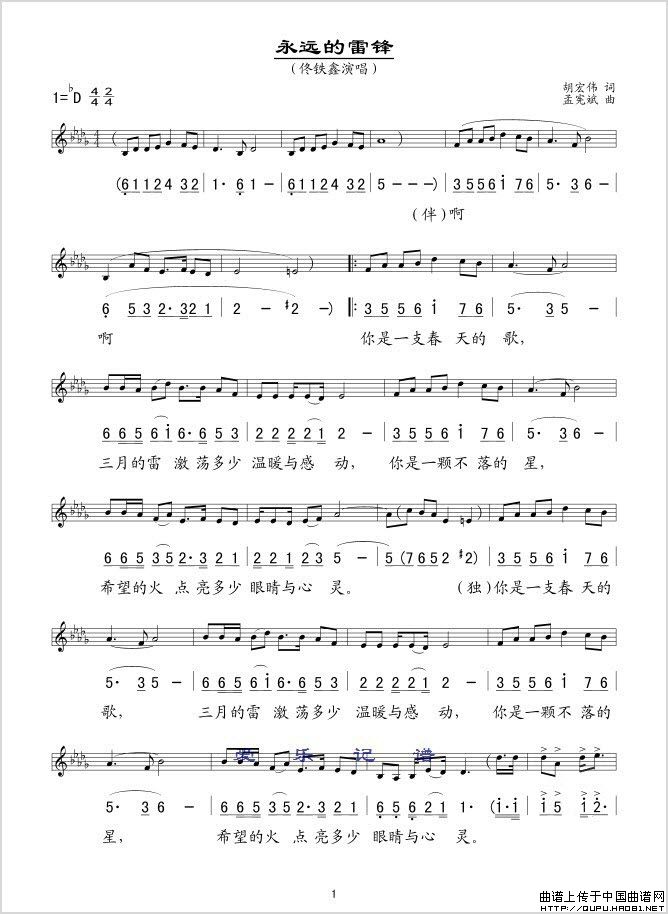 永远的雷锋(胡宏伟词 孟宪斌曲、线简谱混排版)(1)_原文件名:永远的雷锋1.jpg