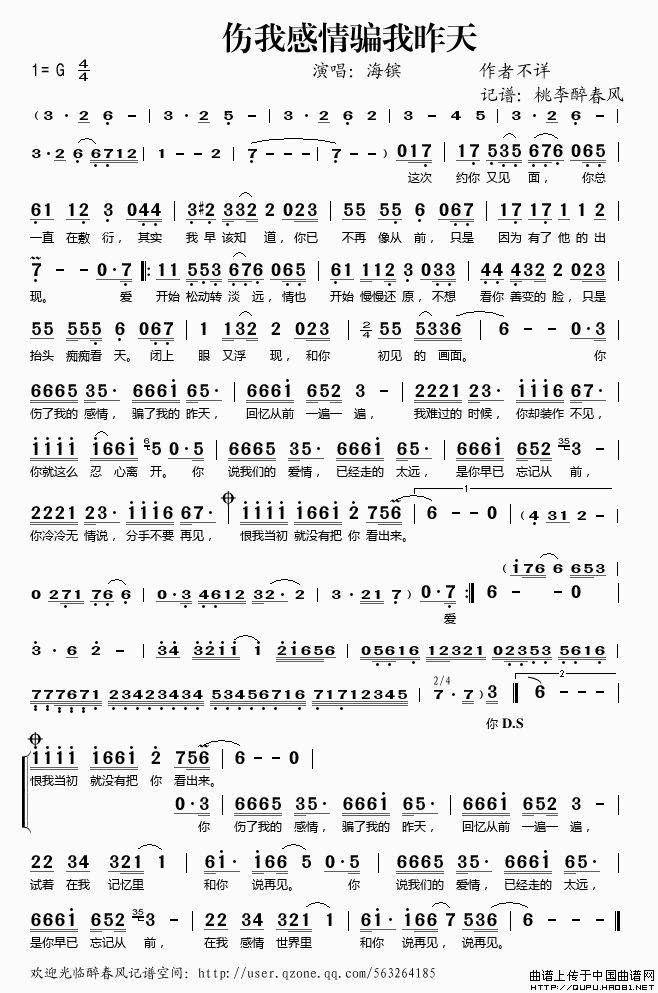 演唱(奏):海镔 格式:简谱 来源:桃李醉春风记谱 上传:桃李醉春风