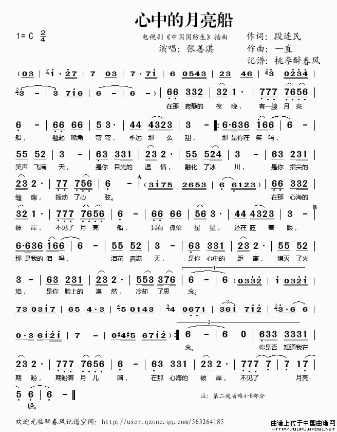 关于《心中的月亮船》曲谱的评论