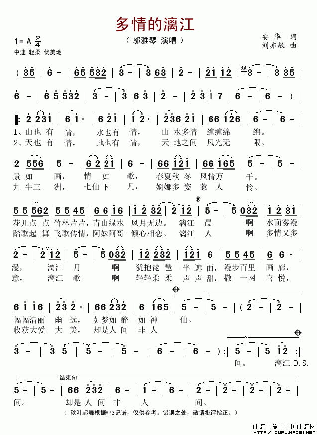 关于《多情的漓江》曲谱的评论