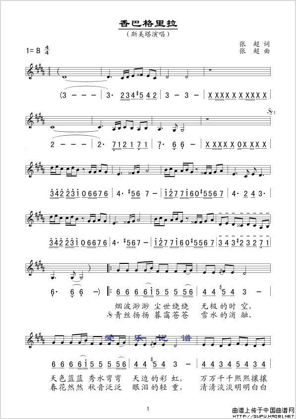 格式:简线混排 来源:爱乐 制谱上传 上传:爱乐