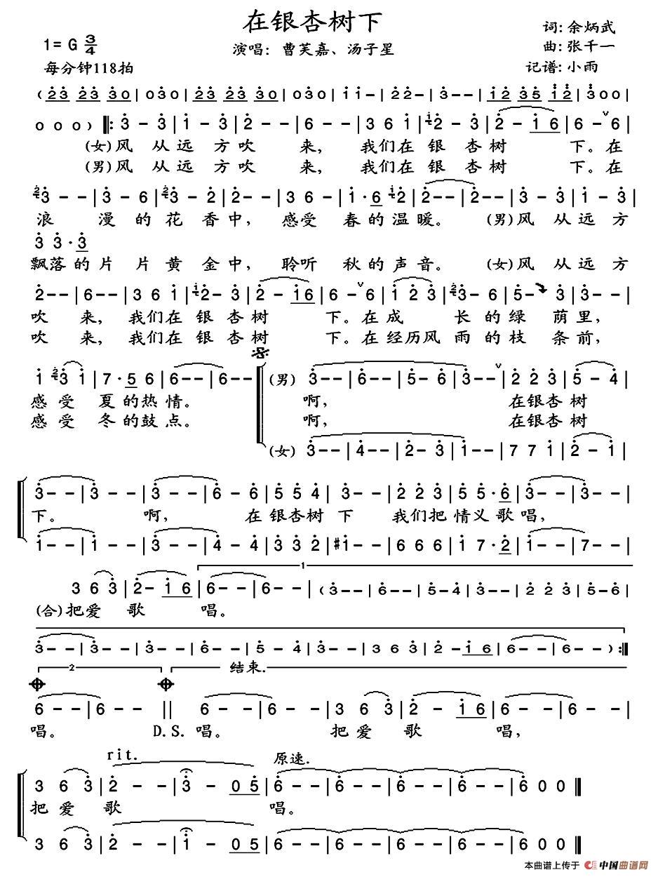 《在银杏树下》文本歌词