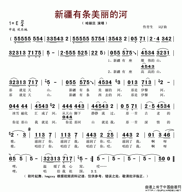 关于《新疆有条美丽的河》曲谱的评论