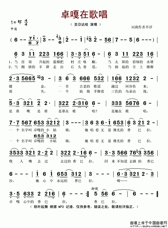 提示:在曲谱图片上单击右键,选择“图片另存为...”即可将曲谱保存到您的电脑中,打印时候可将图片插入到WORD中,调整合适大小打印即可。