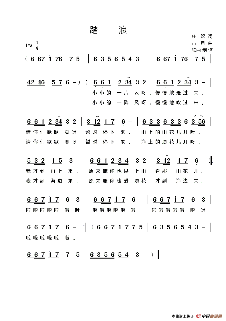 作词:庄奴   作曲:古月   格式:简谱   来源:欣曲制谱   上传:欣曲制谱   日期:2012-09-05   浏览次数: