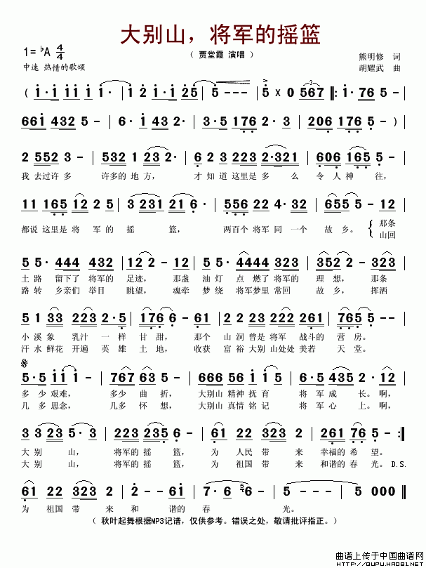 关于《大别山,将军的摇篮》曲谱的评论