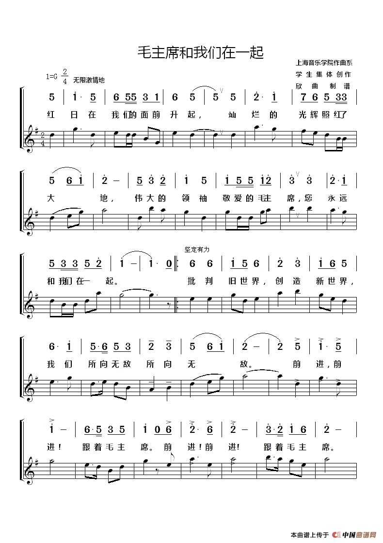 作词:上海音乐学院作曲系学生集体创作 格式:简谱 来源:欣曲制谱 上传:欣曲制谱