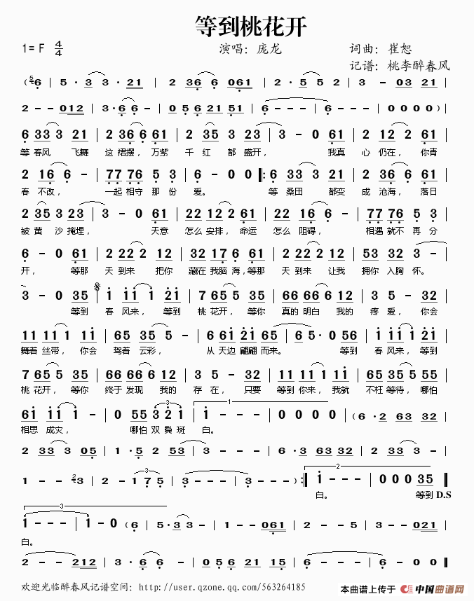 作词:崔恕   作曲:崔恕   演唱(奏):庞龙   格式:简谱   来源:桃李醉春风记谱   上传:桃李醉春风   日期:2012-11-18   浏览次数: