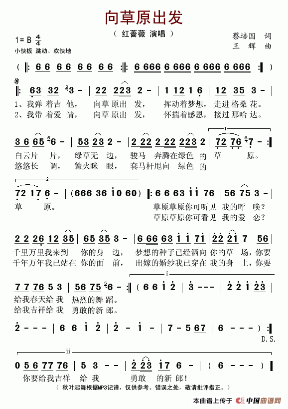 关于《向草原出发》曲谱的评论