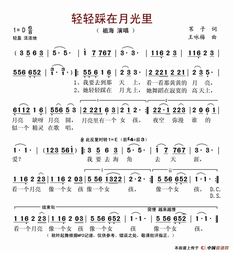 关于《轻轻踩在月光里》曲谱的评论
