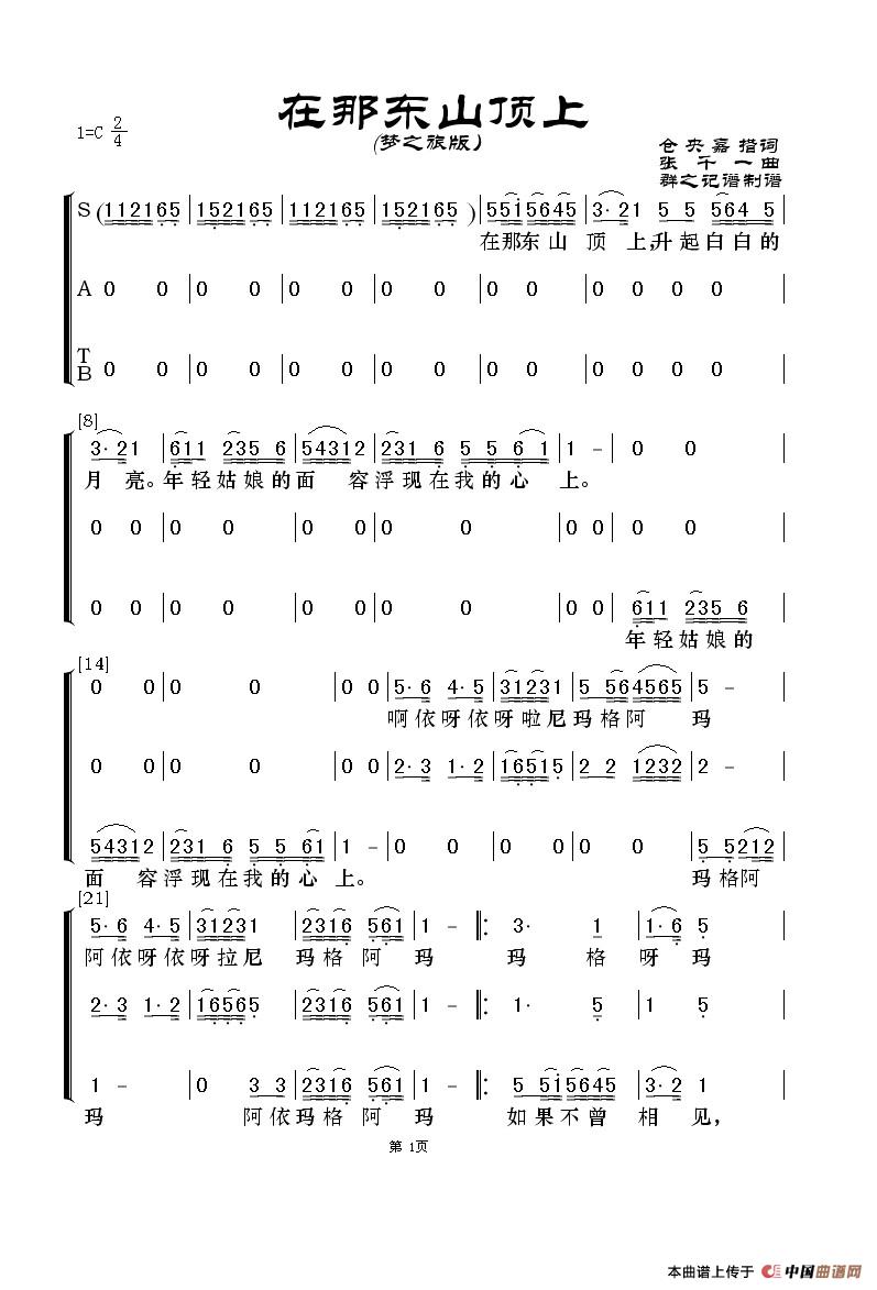 关于《在那东山顶上》曲谱的评论