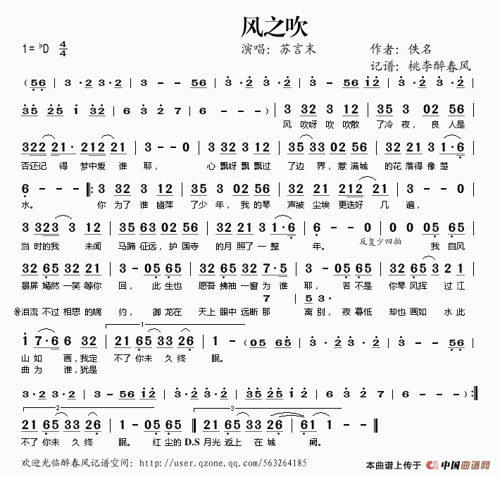 演唱(奏):苏言末 格式:简谱 来源:桃李醉春风记谱 上传:桃李醉春风