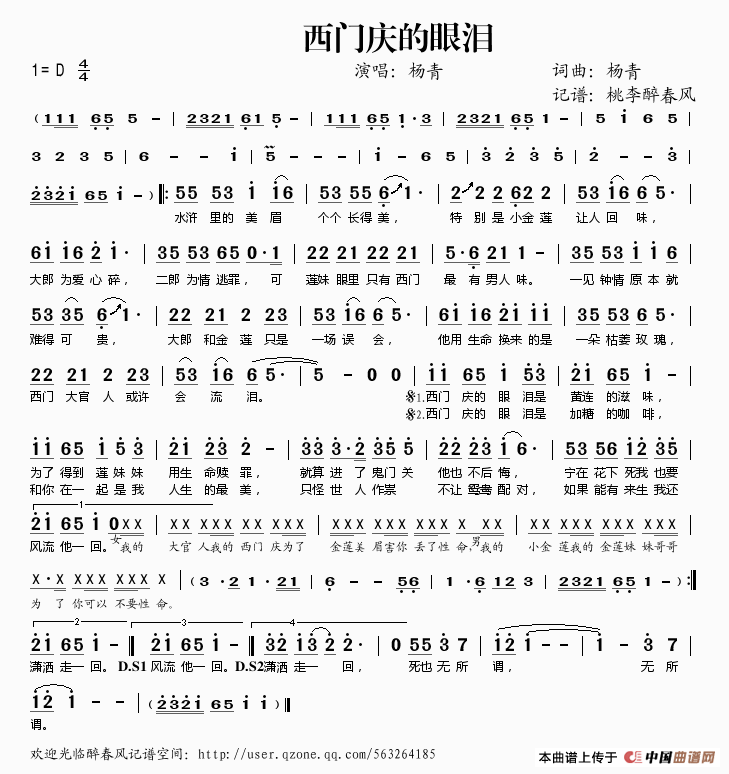 关于《西门庆的眼泪》曲谱的评论