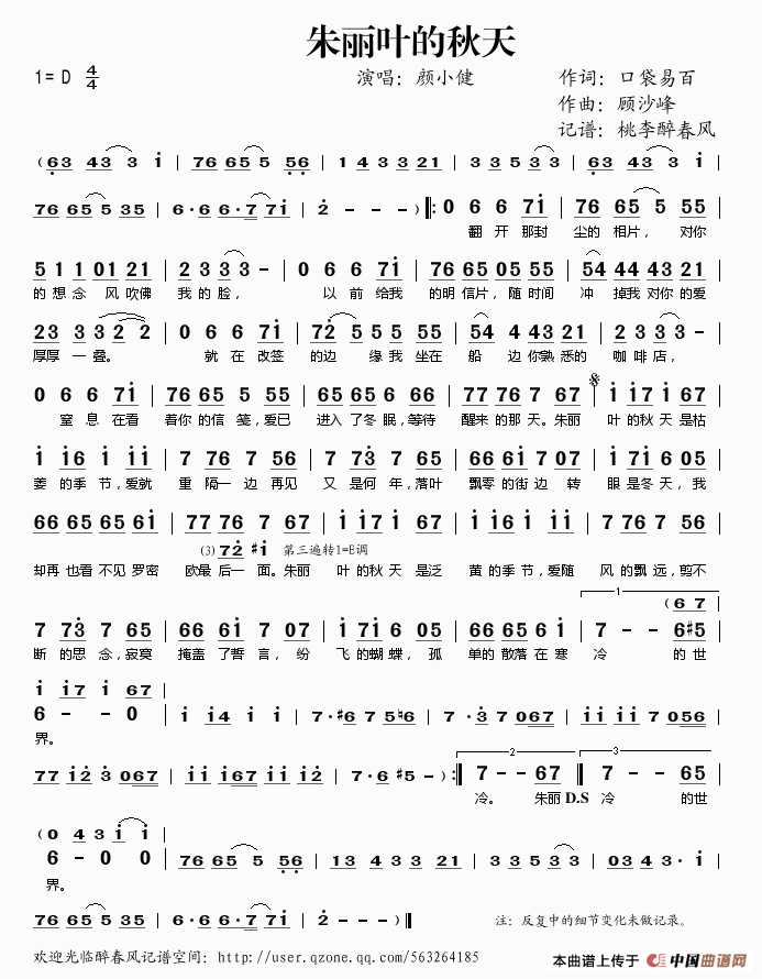作词:口袋易百   作曲:顾沙峰   演唱(奏):颜小健   格式:简谱   来源:桃李醉春风记谱   上传:桃李醉春风   日期:2013-02-15   浏览次数: