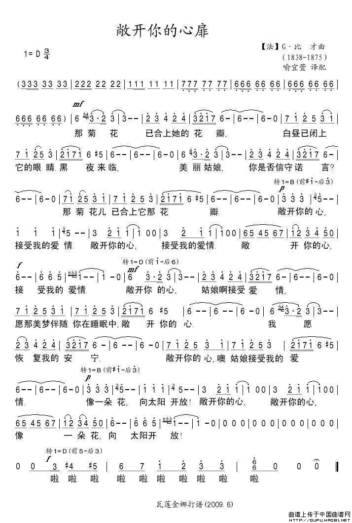 格式:简谱 来源:瓦莲金娜 制谱上传 上传:瓦莲金娜
