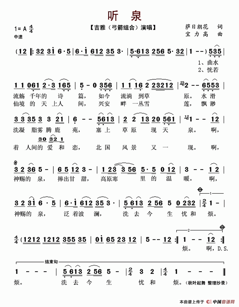 作词:萨日朗花 作曲:宝力高 演唱:吉雅(弓箭组合)
