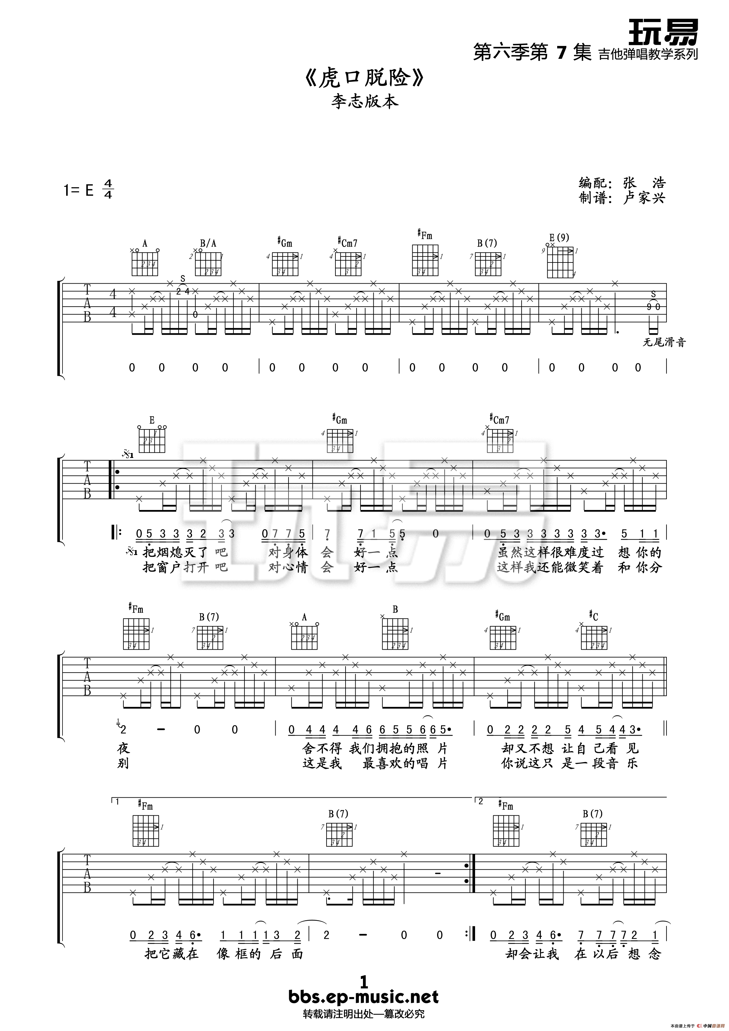 《虎口脱险 吉他谱 六线谱》文本歌词