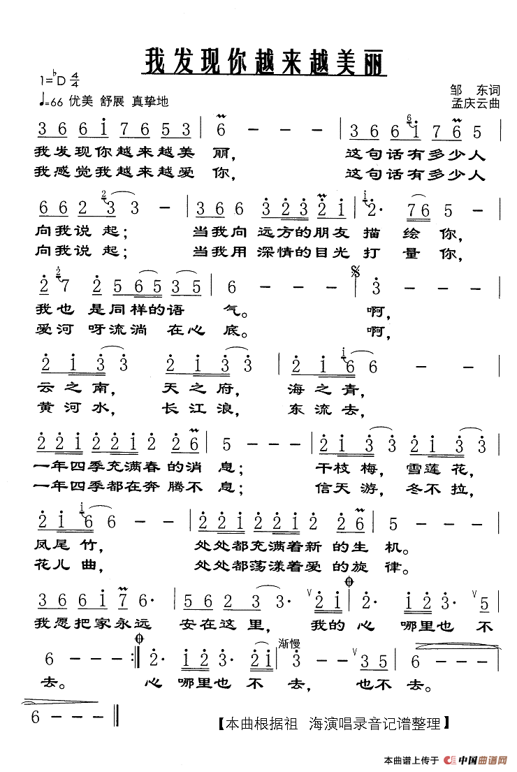 关于《我发现你越来越美丽》曲谱的评论
