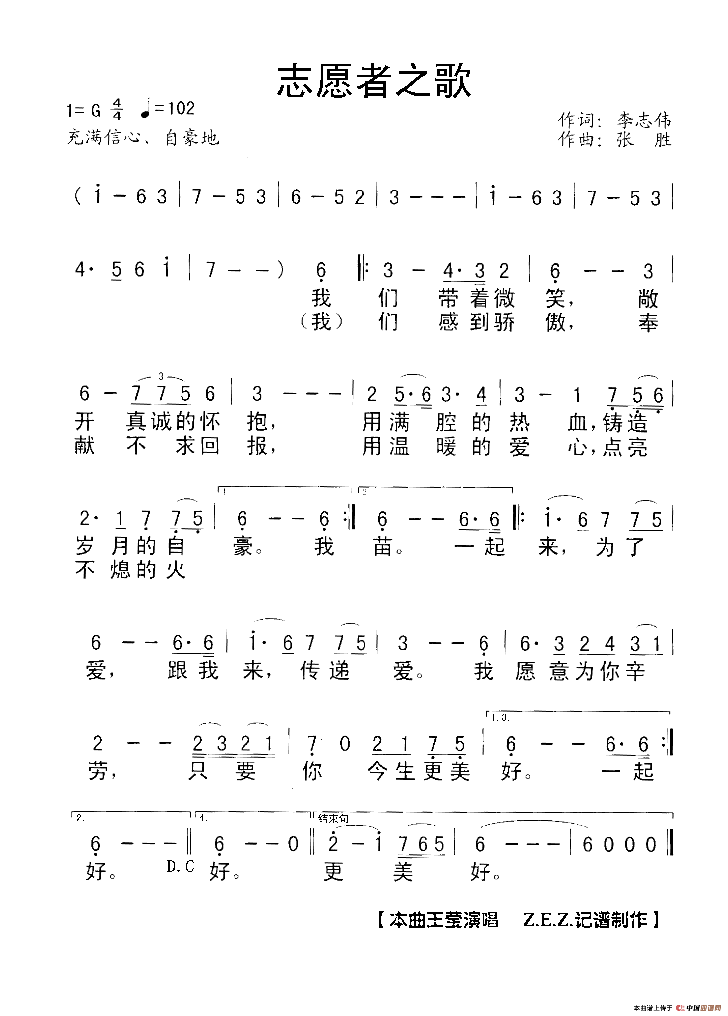 志愿者之歌(李志伟词 张胜曲)(1)_原文件名:志愿者之歌(王莹).GIF