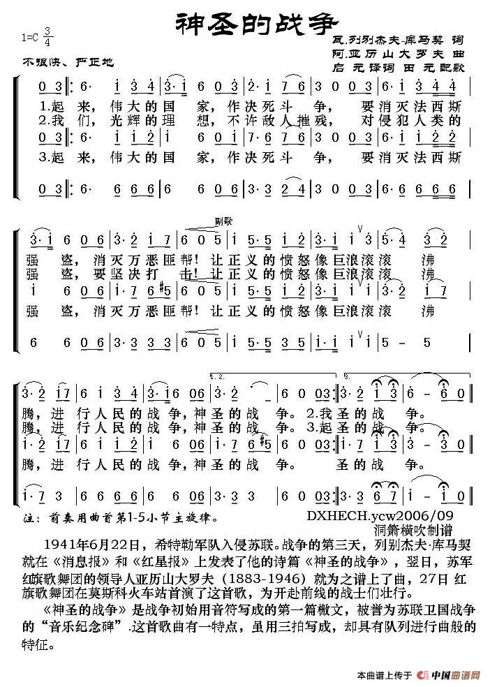 作词:瓦。别列杰夫。库玛契 启元译词 作曲:阿。亚历山大罗夫曲 田元配歌 演唱(奏):苏军红旗歌舞团 来源:制谱 上传:洞箫横吹