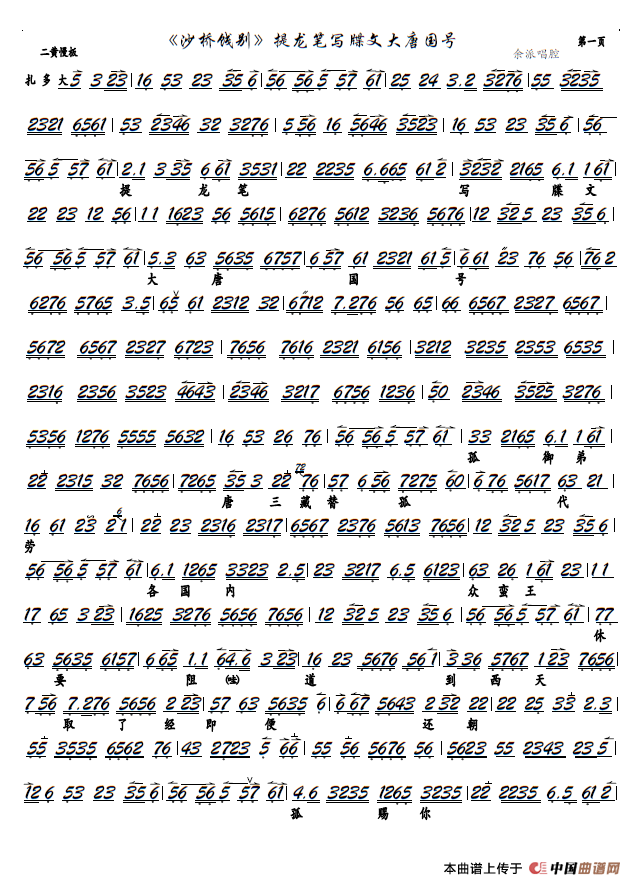 《沙桥饯别》提龙笔写牒文大唐国号(京剧《沙桥饯别》选段、京胡谱)