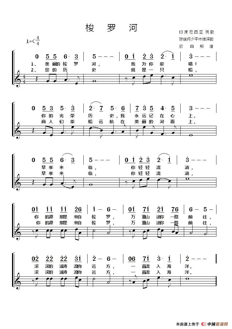 关于《[印度尼西亚] 梭罗河》曲谱的评论
