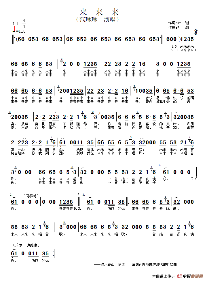 在曲谱图片上单击右键,选择"图片另存为..."即可将曲谱保存到您的电脑中,打印时候可将图片插入到WORD中,调整合适大小打印即可。