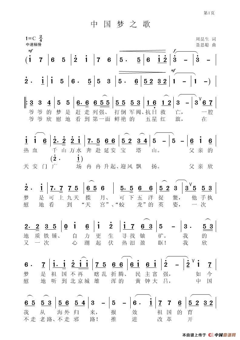 关于《中国梦之歌》曲谱的评论