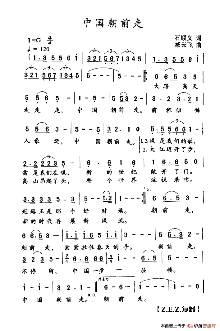 大路高天走走走,中国朝前走,前程似锦人豪迈,中国朝前走。