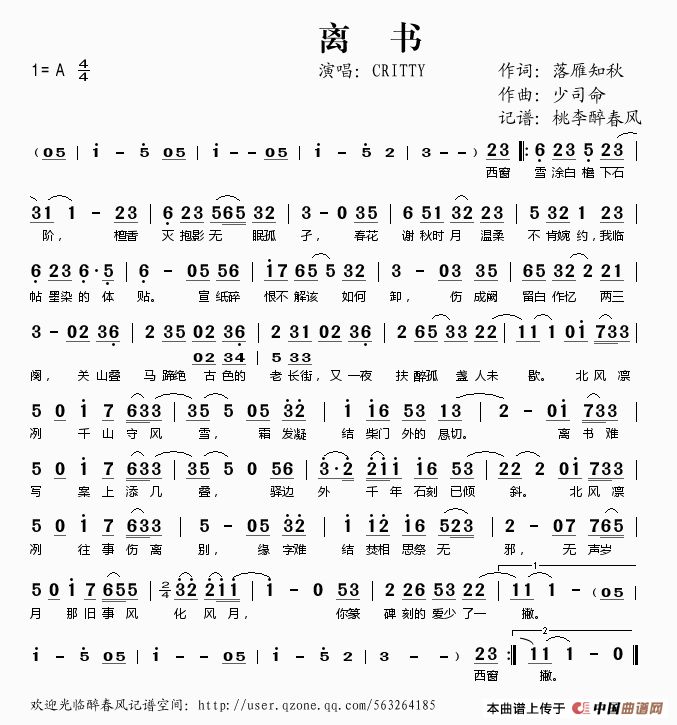 作词:落雁知秋   作曲:少司命   演唱(奏):CRITTY   来源:桃李醉春风记谱   上传:桃李醉春风   日期:2013-11-09   浏览次数:
