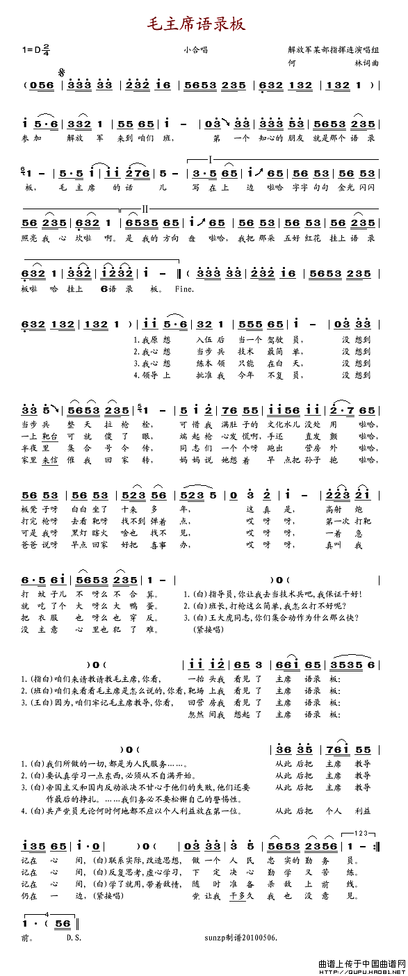 作曲:何林 格式:简谱 来源:sunzp制谱 上传:sunzp