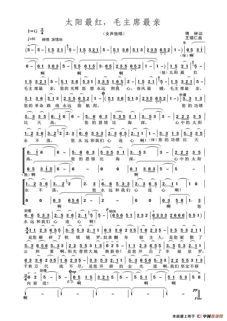 太阳最红,毛主席最亲(傅林词 王锡仁曲)
