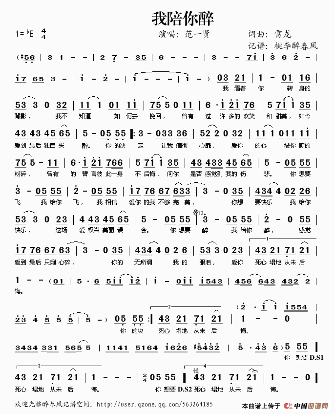 关于《我陪你醉》曲谱的评论