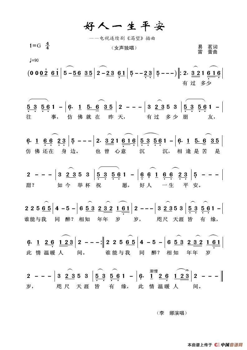 好人一生平安(易茗词 雷蕾曲)