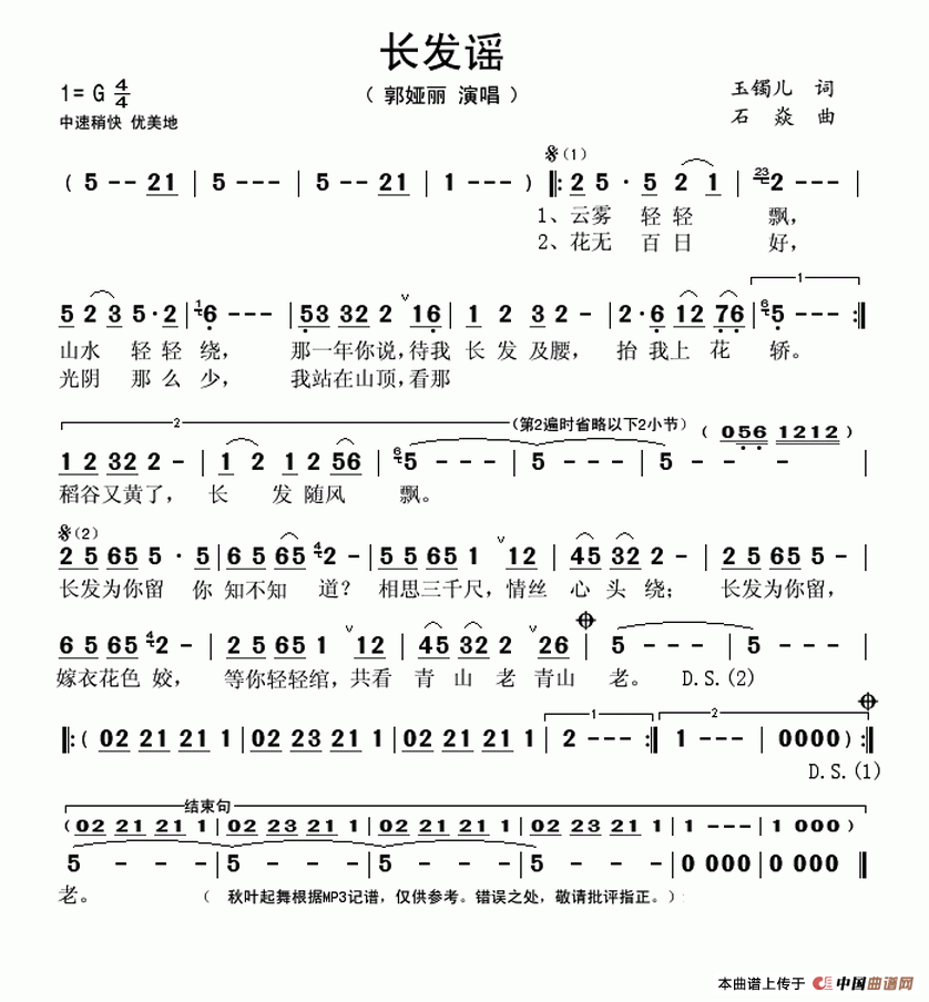 关于《长发谣》曲谱的评论