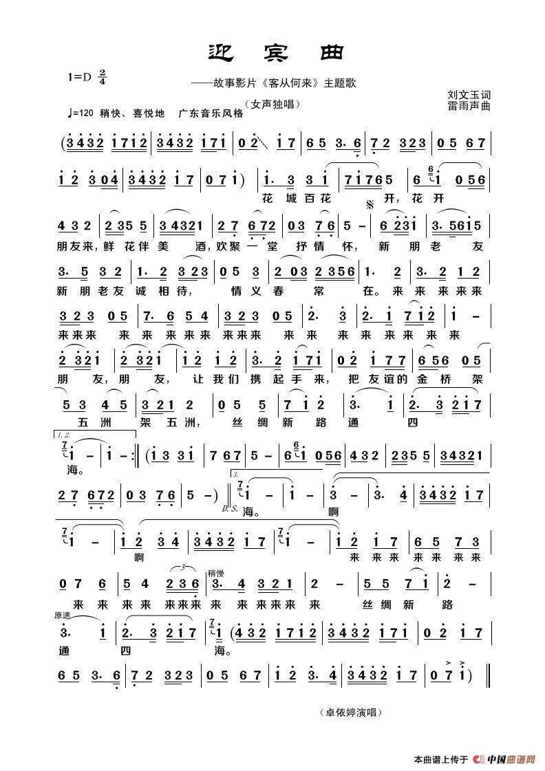 关于《迎宾曲》曲谱的评论