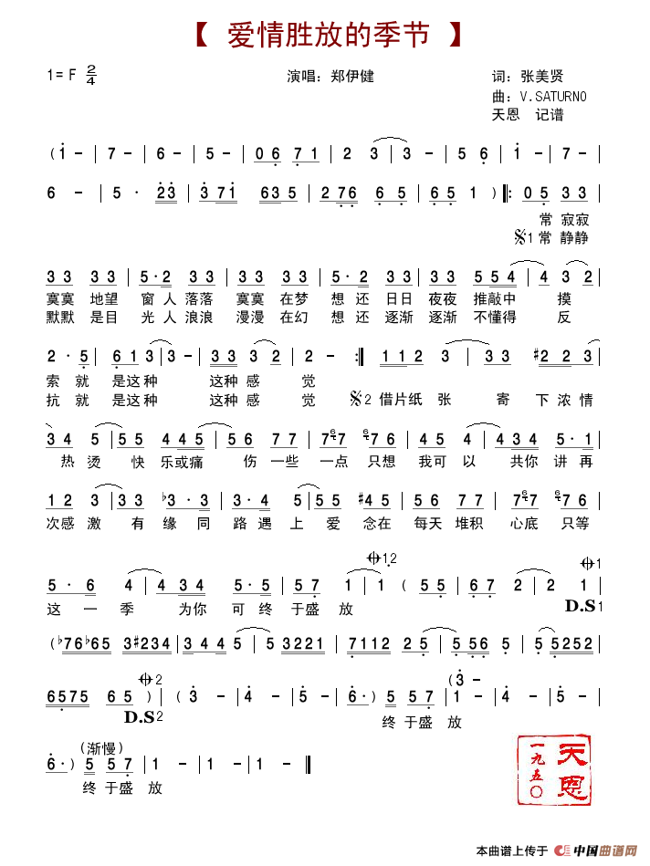 提示:在曲谱图片上单击右键,选择"图片另存为..."即可将曲谱保存到您的电脑中,打印时候可将图片插入到WORD中,调整合适大小打印即可。
