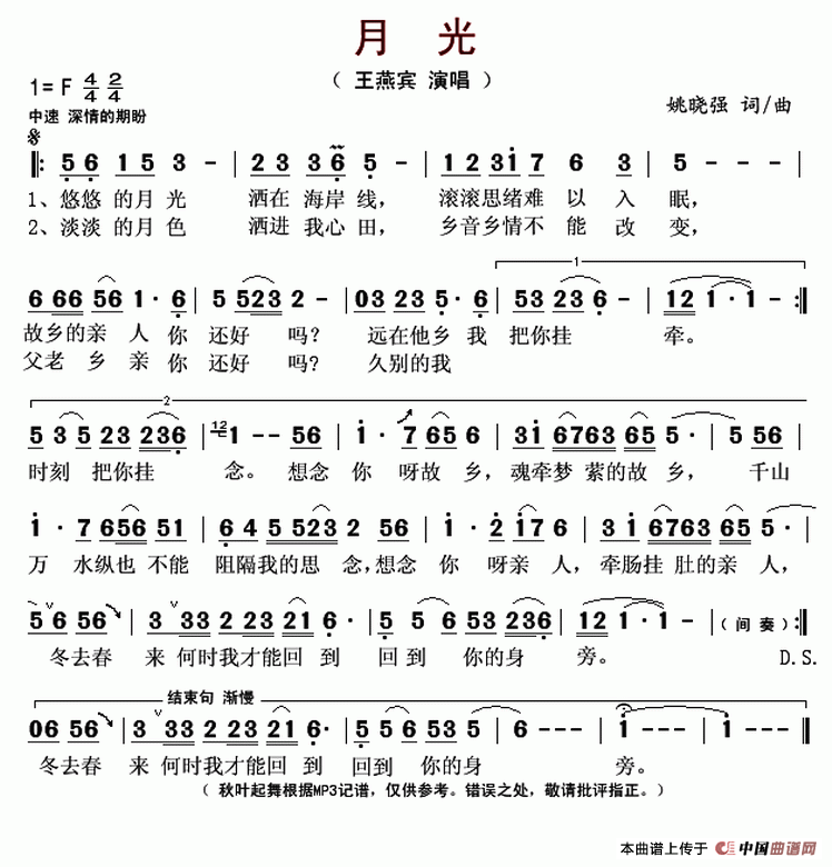 《月光》文本歌词