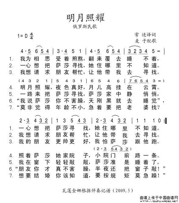 关于《明月照耀》曲谱的评论