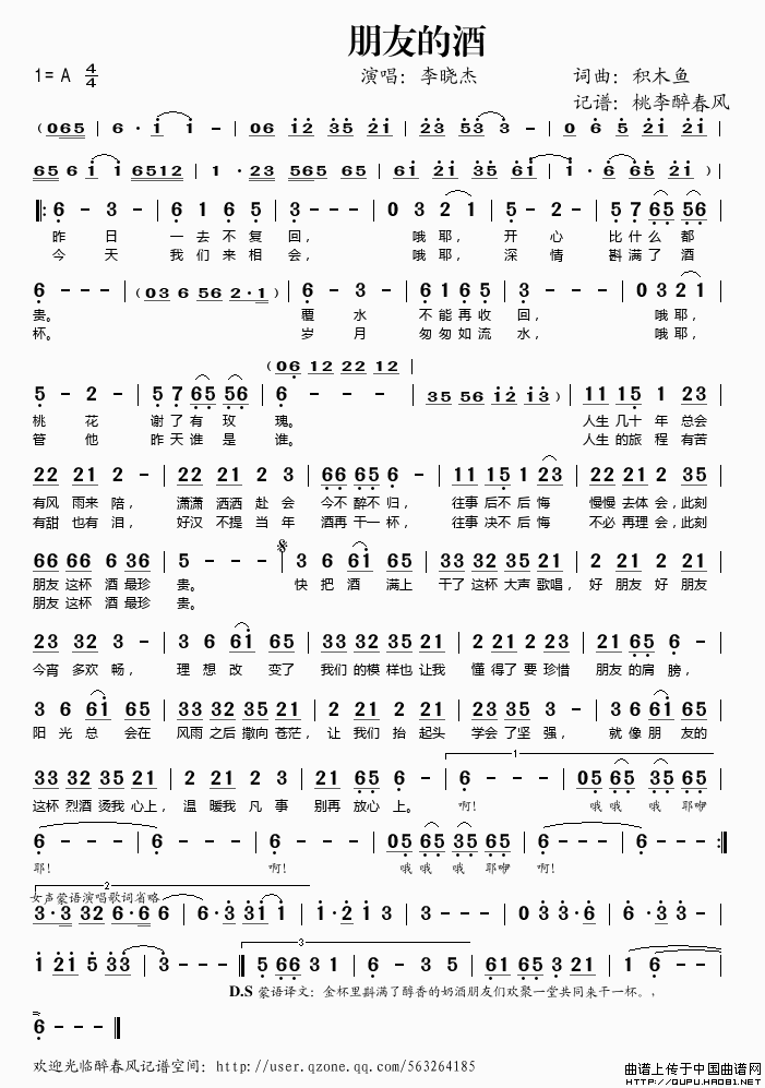 关于《朋友的酒》曲谱的评论