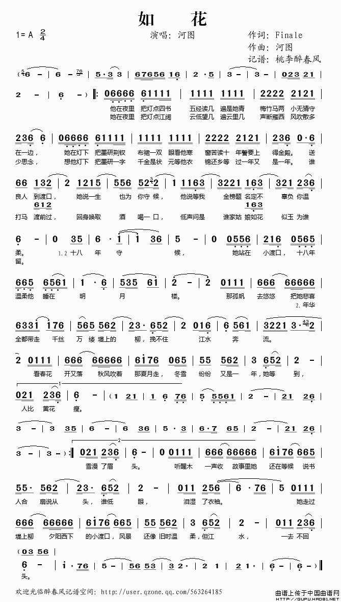 关于《如花》曲谱的评论