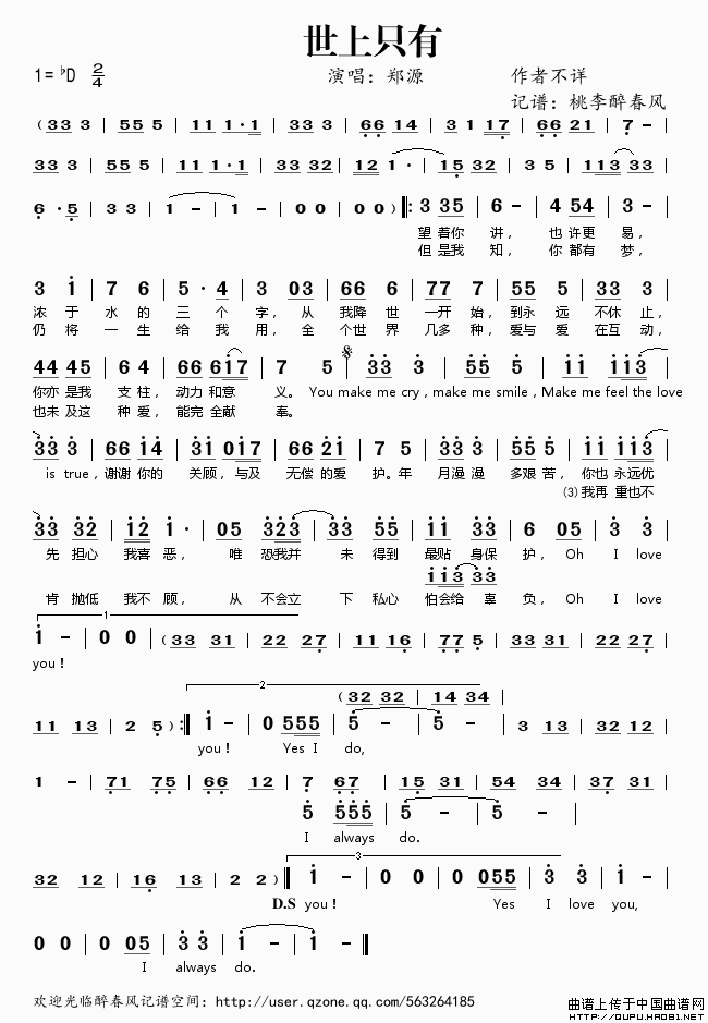 关于《世上只有》曲谱的评论