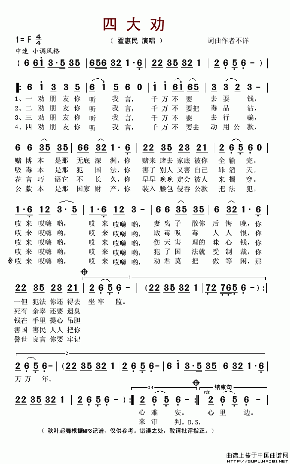 格式:简谱 来源:秋叶起舞 记谱上传 上传:秋叶起舞