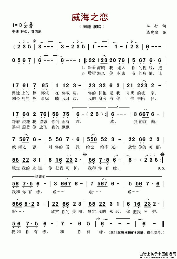关于《威海之恋》曲谱的评论