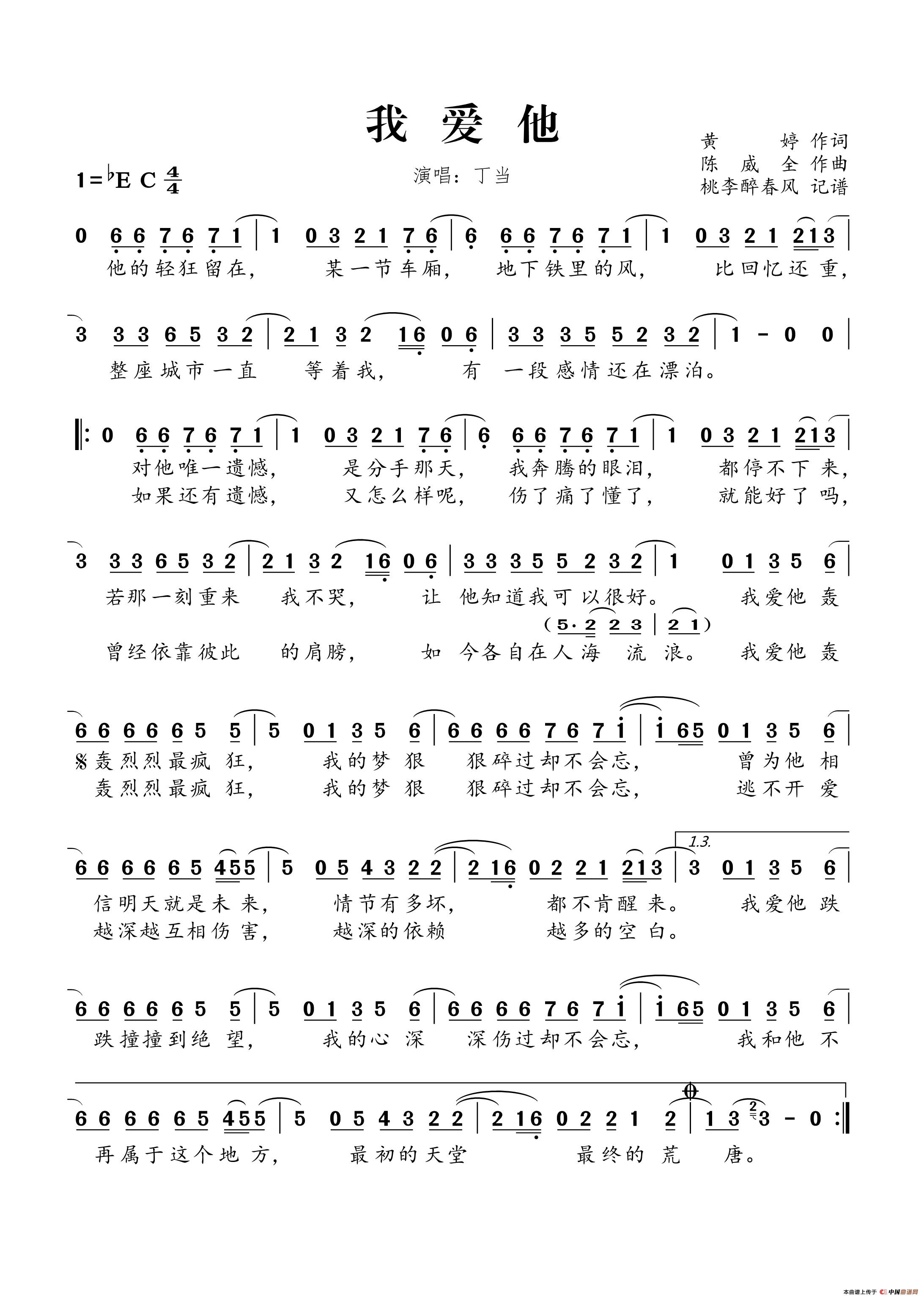 作词:黄婷   作曲:陈威全   演唱(奏):丁当   格式:简谱   来源:桃李醉春风记谱   上传:桃李醉春风   日期:2010-04-01   浏览次数:
